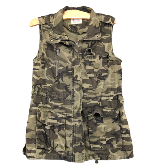 Ashley by 26 International Women's Zip Up Utility Vest Camo Small Multi Pockets