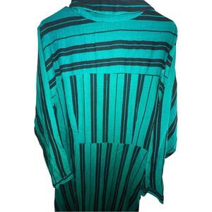 Ashley Stewart Linen Blend Vertical Stripe Button Up Maxi Dress Size 14