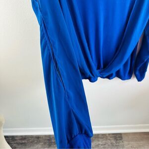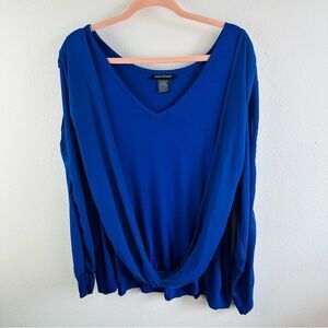 Ashley Stewart Royal Blue Mixed Media Open Long Sleeve Blouse Size 22/24