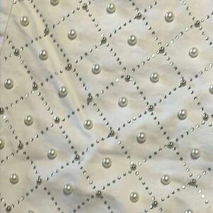 Both have some stretch and are bejeweled with pearls and rhinestones