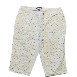 Ashley Stewart bejeweled white Jean Jacket and Crop pants, 22/24