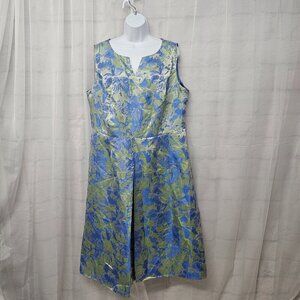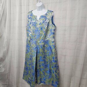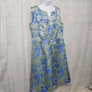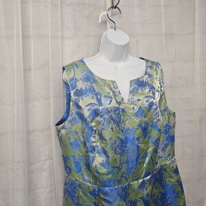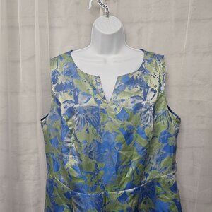 Ashro Periwinkle Blue Green Sleeveless Midi Dress Satin Retro Abstract 16W