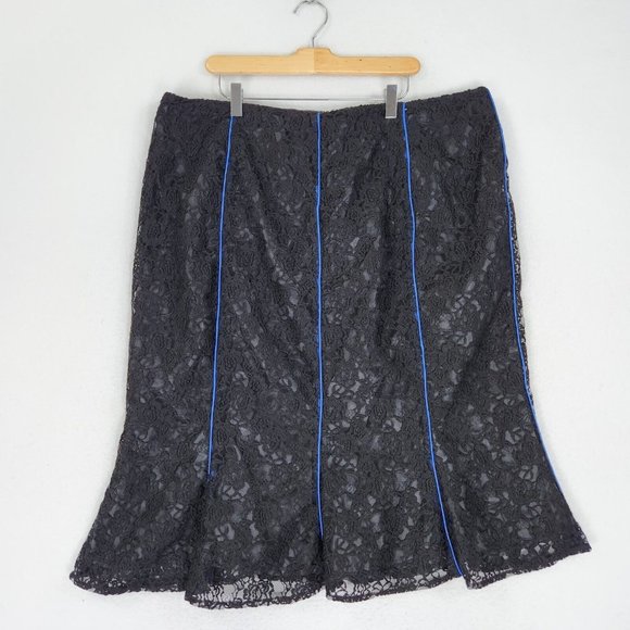 Ashro Skirt Womens 20 Black Blue Lace A Line Trumpet Classic Pleated Flare