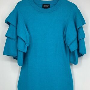 Ashro Turquoise Knit Bodycon Dress with Layered Sleeve Viscose Blend Size M Approximately Measurement:Shoulder 15,5”/Pit 17”/Length 43” Pre-owned Excellent Condition