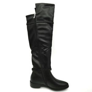 Ashro Womens Boots Black Faux Leather Over The Knee Side Zip Block Heel 7 NEW
