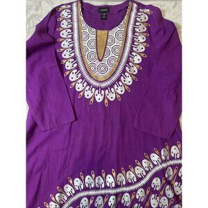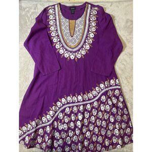 Ashro Women’s XXL Linen Blend Dashiki Tunic Dress Purple Ethnic African Print