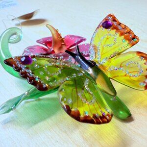 Ashton Drake butterfly, heirloom ornament, display shelf, curio cabinet, sun catcher, gift for her, glass butterfly figurine, vintage collectible gift, floral glass sculpture, elegant gift, crystal style art, butterfly home decor, glass flower ornament, nature inspired figurine, heirloom collectible, home decor, vintage Ashton Drake, butterfly decoration, gift for collectors