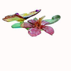 Beautiful glass butterfly and flower ornament from the Ashton Drake Heirloom Collection. This delicate collectible figurine features shimmering details, making it a perfect gift or elegant addition to your home décor.