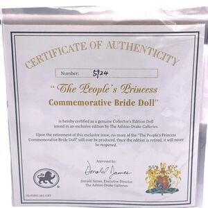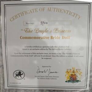 Ashton Drake Collectable Princess Diana Bride Doll The People's Princess NEW Wht