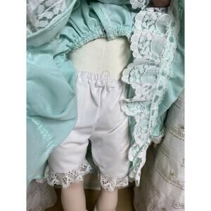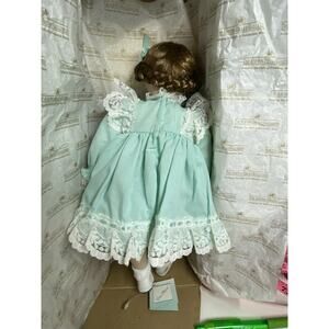 Ashton Drake Galleries Lisa Marie Porcelain 1993 Look At Me Collectors Doll With Box. Sweet vintage doll with green eyes and reddish Brown hair. Pale green dress with lace. Lisa Marie comes with her box and authentication papers. Included is a Pamphlet about the artist. Lisa is perfect for adding to a collection or using as room decor. She is also great for gift giving.