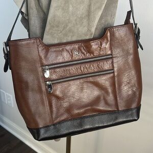 Ashwood Genuine Leather Boho Double Zip Pockets Designer Handbag Purse Deer Logo