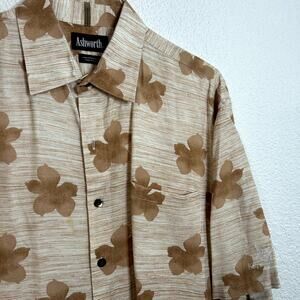Ashworth Linen Rayon Blend Button Down Hawaiian Shirt Mens Size XL Tan Orange