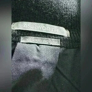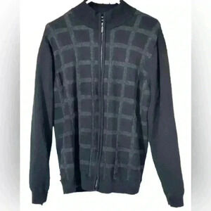 Ashworth Merino Wool Plaid Mens Sweater M Full Zip Black Gray