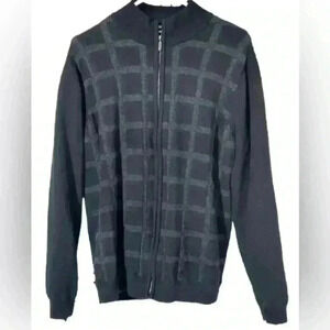 Ashworth Merino Wool Plaid Mens Sweater M Full Zip Black Gray
