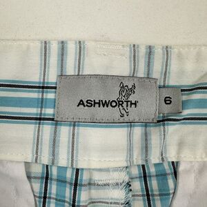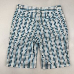 Ashworth White Blue Plaid Bermuda Shorts Size 6 Flat Front Cotton Blend Stretch
