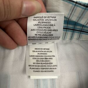 Description: Stay stylish and comfortable with these Ashworth White Blue Plaid Bermuda Shorts in Size 6. The plaid pattern adds a classic touch to these shorts, while the cotton blend fabric with stretch ensures a comfortable fit. The flat front design offers a sleek and polished look. Perfect for warm weather, these Bermuda shorts are a versatile addition to your wardrobe.
