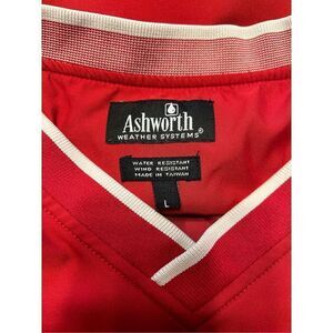 Ashworth Weather Systems Pullover Golf Windbreaker size Large. Has pockets and fully lined water and wind resistant.