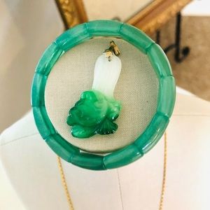 Jadeite green and white cabbage pendant. ( I think it’s a glass souvenir charm)