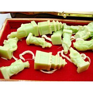Asian Chess Set Hand Carved Soapstone Resin Wood Fold Storage Case 8 Fairies Vintage