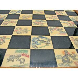 Asian Chess Set Hand Carved Soapstone Resin Wood Fold Storage Case 8 Fairies Vtg