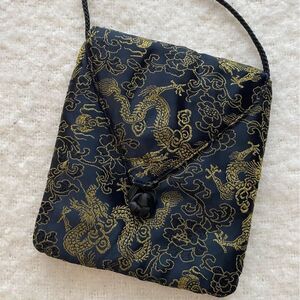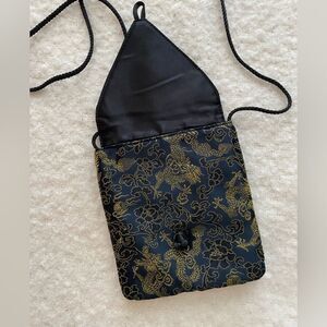 Asian Design Small Satin Crossbody Bag - Gold Embroidery on Black Purse