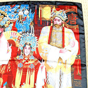 Asian Emperor Empress Scarf large silky feel square wrap modern colorful satin