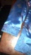 Asian satin blazer with floral embroidery. Features vibrant designs on a blue background.