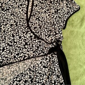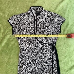 This elegant black and white wrap dress is perfect for any occasion. Its classic design and comfortable fit make it a wardrobe essential.