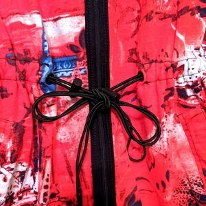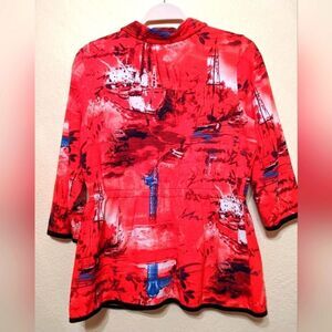 top shirt zip red black Asian pockets cotton long sleeve 3/4 adjustable art to wear