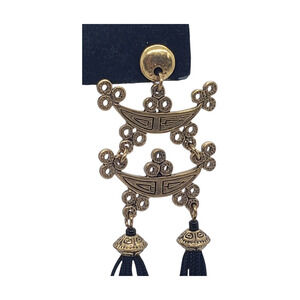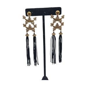 Color/Material: Gold tone metal with black multi-strand fabric tassels