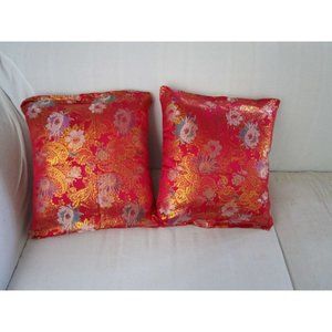 • Asian Floral Damask Pillow Covers, One Pair