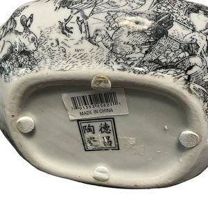 Asian Inspired Teapot, BLACK AND WHITE with Birds, chickens & rabbits No Defects