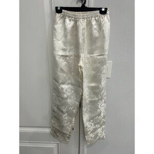 Asian Inspired Two Piece Satin Brocade Set w/ Dragon Motif 3/4 Sleeve Top Ivory