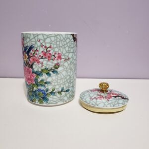 Asian Porcelain Ceramic Tea Bag / Trinket Canister Home Decor 5"×3.5"