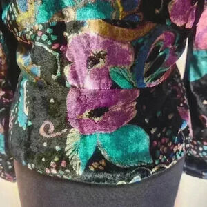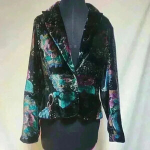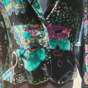 Asian Print Bandolino Size 6 Velvet Peplum Jacket Waistband/Sleeve Button Detail