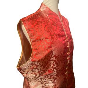 Asian Red and Gold Vintage 100% Silk Sleeveless Vest Size XXL