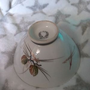 Nice Porcelain rice bowl with pinecones w/gold accent
