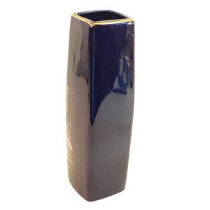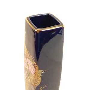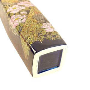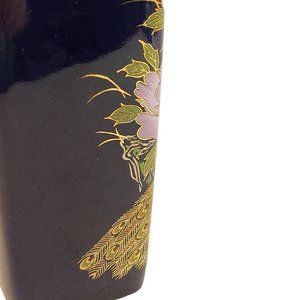 Asian Style Vase Peacock Pink Peonies Cobalt Blue Bright Gold Gilding Vintage 9"