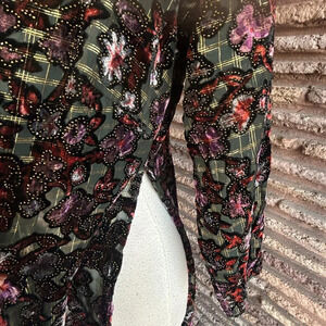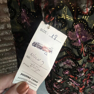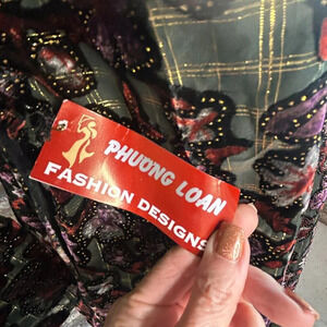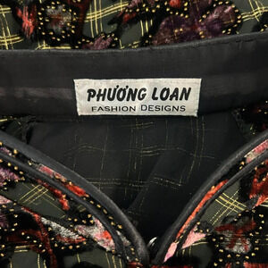 Asian Vietnamese Black Velvet Burnout Cheongsam Ao Dai Maxi Long Dress NWT