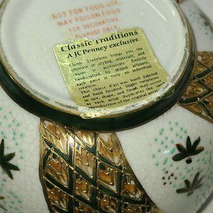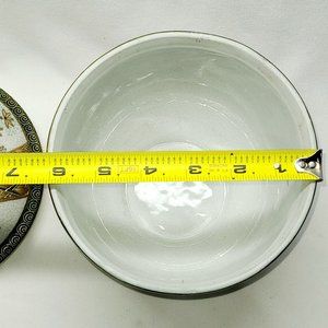 Asian inspired hand painted lidded cache pot