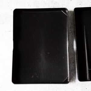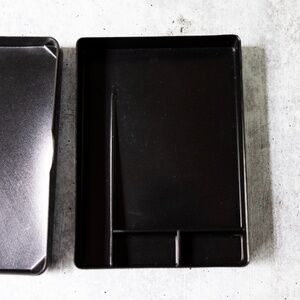 Beautiful Asian box that I assume is vintage--I don't know the maker, the age, or the original purpose. It has minimal dividers on the inside--perhaps it was for calligraphy with a spot for a brush on the left. There is some wear and paint loss, with some scratched areas on the top of the lid (last photo) but still lovely. Measures about 7.5" x 5.5" and 1.25" deep. Smoke- and pet-free home.