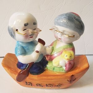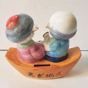 Ceramic Asian Break Bank w/4 Different Color Paper Umbrellas. Break bank is when there is no way to retrieve the contents other than to break the bank.