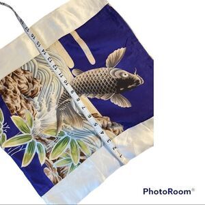 Silk and satin pillow cover with zip fastening. Design shows a fish jumping out of the waves and plants, some painted silver edging. Pillow not included. Great condition but a few marks on the back as pictured
