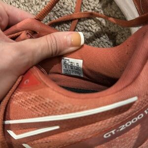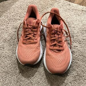 Size 10 Asics. Gently worn. Pink/orange, maybe peach color.
