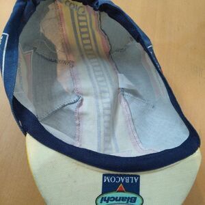 Asics Bianchi Mercatone Uno Albacom Cycling Hat Cap - Good Condition With A Few Marks/Spots (Red Mark/Ink Bleed On Front Below Logos - Pictured)