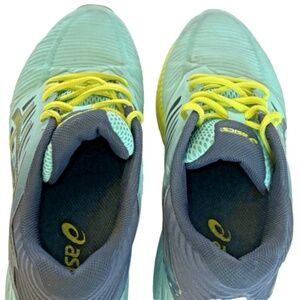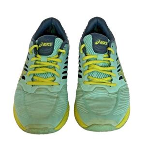 Asics FuzeGel T689N Blue Green Lime Running Shoes Lace Up FuzeX Women's 8.5US