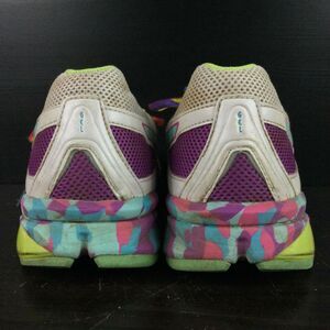 These shoes are in great condition! Minimal wear, inside and out! They are(were) white, but have a little darkening from use. There are a couple of small stains on the inside lining. The accents are all pastel, from every part of the rainbow. The laces are bright rainbow-colored. Women's size 9.5 and EU size 41.5.