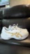 Asics Gel-Rocket 10 Men's Court Shoes, White / Pure Gold Size 10.5 Euro 44.5. They look like new. See picture there is a water stain on the insole(((box18))