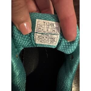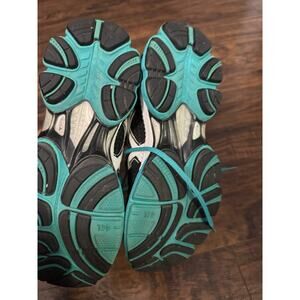 They have been worn but in good condition! The Asics Gel-nimbus 13 Women's Black and Green sneakers in size 8 are a stylish and comfortable option for active individuals. Featuring a solid pattern, lace-up closure, and breathable mesh upper material, these athletic shoes are perfect for casual wear and various activities like walking, cross-training, or jogging. With cushioned support and a comfortable design, these ASICS GEL-Nimbus sneakers are ideal for those looking for a blend of athleisure style and sports performance.