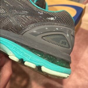 Asics Gray and Green Athletic Shoes with Mesh Upper
